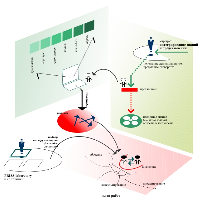 принципиально иное, нежели на маршруте интегрирования знаний и представлений,