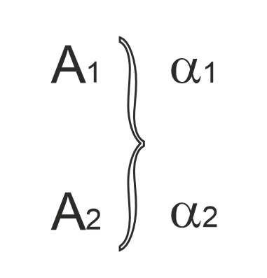 Тюков: Коммуникация у вас определена через чистое мышление… Нет, коммуникация у меня не определена через чистое мышление. Мне мышление [определить] надо было, а не коммуникацию. Тюков: А когда вы задаете коммуникацию… Минуточку. Я не задаю коммуникацию… Вот, Сергей Васильевич, вам демонстрация того, что сегодня происходит повсеместно. Брянкин: Я все понял. Повсеместно происходят вот такие безобразия. И эта схема методологического мышления, или схема организации пространства, имеет целью прекратить все это коммуникативное безобразие, а именно: научить их мыслить как то… Дальше работать в системе сложившихся, существующих средств уже нельзя, ничего больше получить нельзя. Что я обсуждаю? В процессе моего рассуждения у меня был шаг задания понятий: вот точка в рефлексии – вне этих верстаков, предметов и т.д. И теперь для того, чтобы поставить вопрос о коммуникации, то есть осуществить простое оборачивание, я говорю, скажем, что есть А1 – это чистое мышление, есть А – это мышление, организованное в той или иной системе деятельности, и между ними задается различие. Как задается? Я ведь говорю про какой то признак… Вот какой то признак α1 – «замыкается на коммуникации». Вот есть какой то признак другой – α2 (см. рис. 6). |