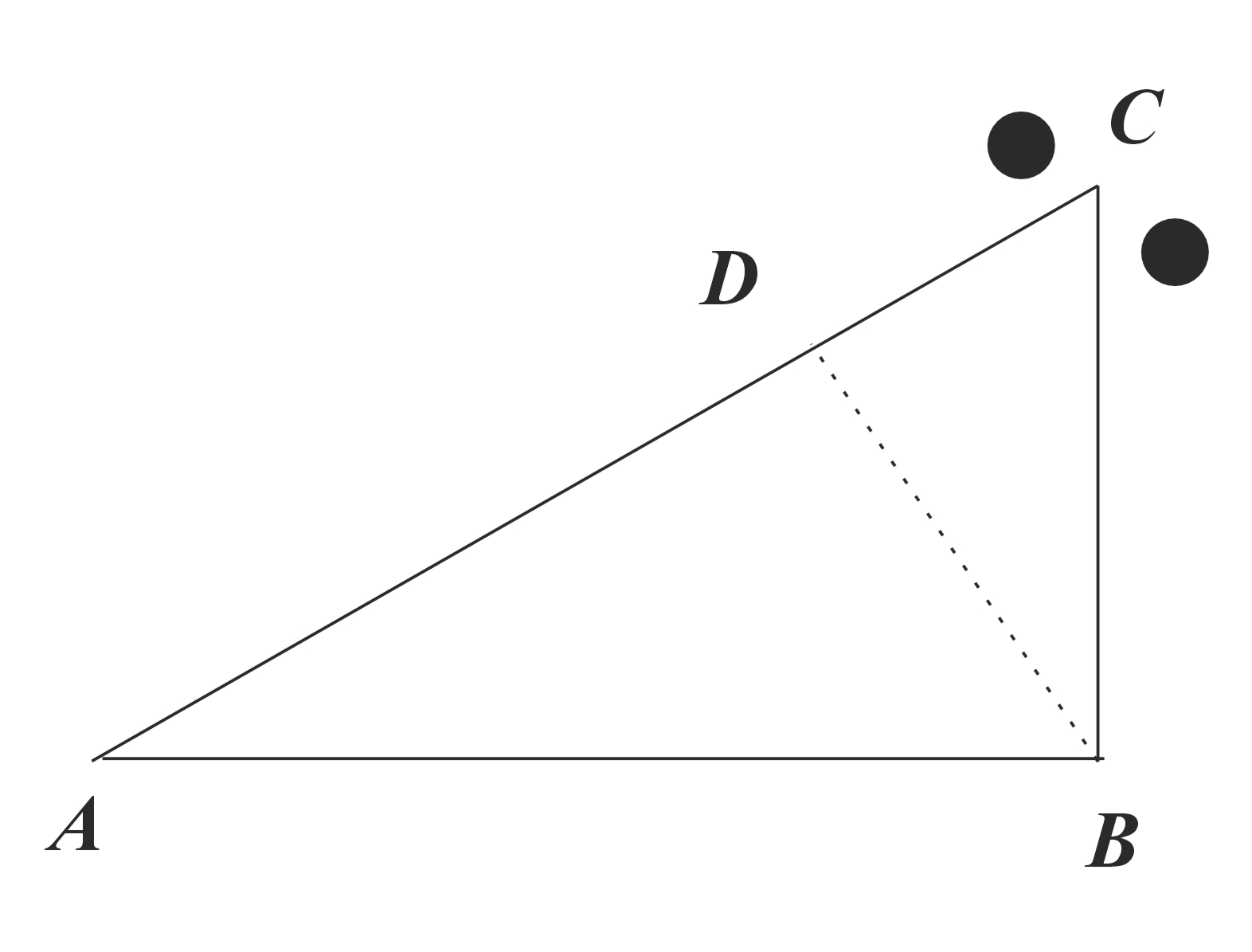как при s1 = s,так и при s1 ≠ s, остается справедливым, если t1 и t2 меняются в той же пропорции, что и пути. Итак, имеются два определения равенства скоростей двух движущихся тел. Первое: скорости двух тел равны, если за равные промежутки времени эти тела проходят равные пространства. Второе: скорости двух тел равны, если пространства, проходимые одним и другим, пропорциональны временам прохождения. Второе определение является обобщением первого. Имея эти два определения, Галилей приступил к сопоставлению конкретных случаев падения тел. Пусть по СВ и СA (см. рис.1) падают два одинаковых тела ([два шара]). Скорость тела, падающего по СВ, будет больше скорости тела, падающего по СA, ибо, как показывает опыт, в течение того времени, за которое первое падающее тело пройдет весь отрезок СВ, второе пройдет по наклонной СA часть СD, которая будет меньше СВ. Отсюда в соответствии с первым определением можно сделать вывод, что скорости тел, падающих по наклонной и по вертикали, не равны. |
