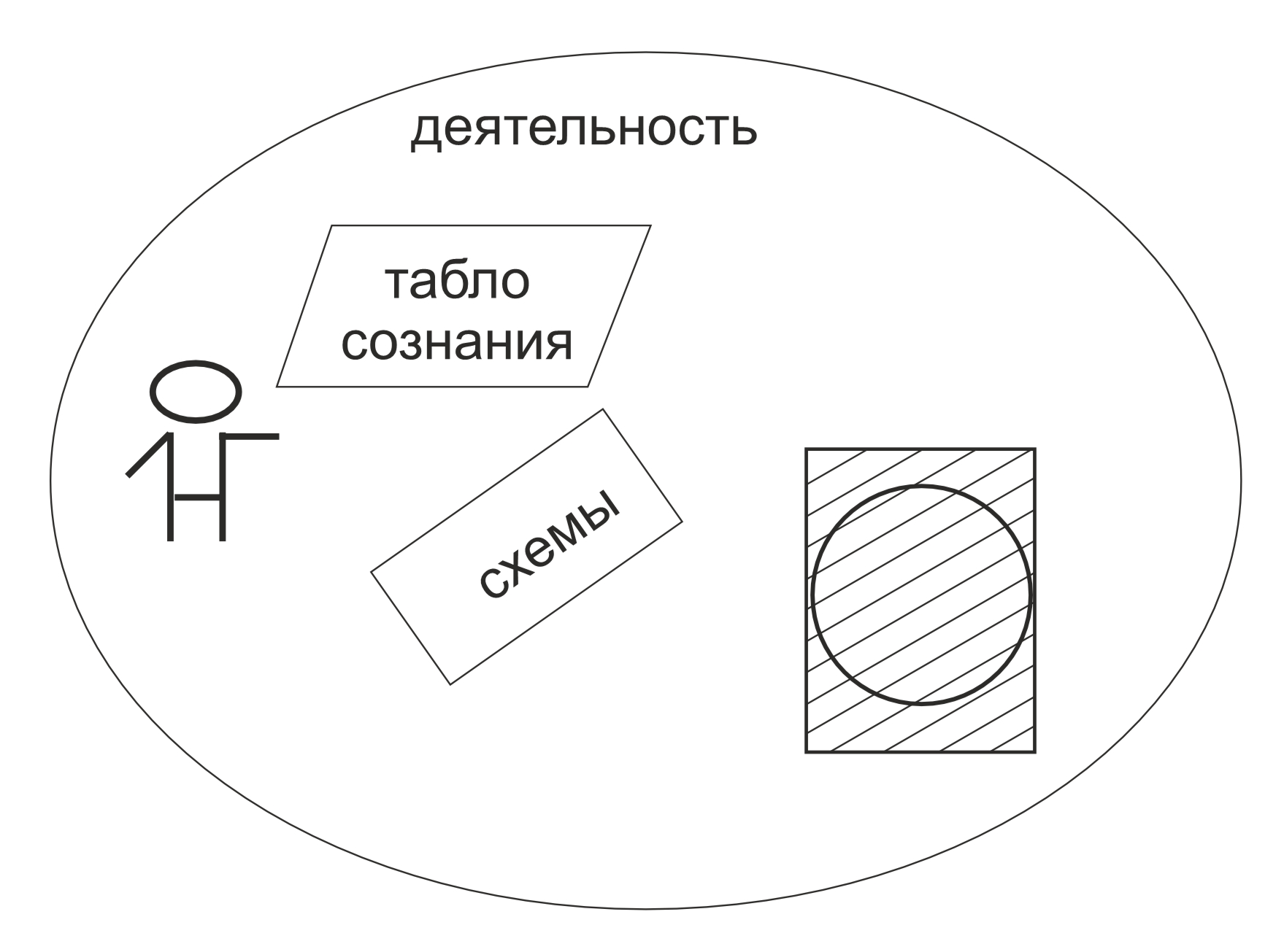 | Здесь реализована идея Маркса о том, что то, что сегодня выступает как материя и материал, есть лишь реализация наших собственных идей. Наша основная идея состояла в том, что происходит замещение объектов знаками, знаковыми формами, работой в знаковых формах, которая была невозможна на уровне объектов, и возврат назад как бы с новой схемой, новой формой самого объекта, которая на объекте не может быть получена. Здесь основной пункт наших столкновений с П.Я.Гальпериным и основание нашей критики. 6. Следующая проблема опять проходит через эту историю. Как оперирование соединяется с объектом? Я утверждаю: природа человеческих операций, действий проистекает не из объектов. Человеческие действия, операции имманентны, это есть деятельность в операциональном, процедурном плане, и вывести операции, действия из объектов в принципе нельзя. Поэтому вопрос о том, как соединяются, сочленяются операции с объектами, образуя гетерогенное, то есть разнообразное образование, мы называем объектно операциональным содержанием. Эта связка операций с объектом является искусственной, а не естественной. Когда мы применяем к объекту те или иные операции, либо нам удается что то сделать, то есть нам сопутствует удача, либо мы получаем «граблями в лоб», и тогда начинается обратный процесс, кстати, вызывающий рефлексию и т.д. Это же все подтверждается гигантским материалом. Мы начинаем, совершив это действие, думать, почему мы ошиблись, почему объект действует иначе, почему нам не удалось достичь своих целей, и за счет этого начинаем (в сложной процедуре анализа ошибок) формирование новых схем, новых представлений об объекте, которое идет вне объекта и помимо объекта только на основании того, что он «вырвался» у нас из рук. В столкновении с объектом мы либо получаем нужные продукты, либо не получаем. Так и начинается вся работа, и она идет в знаковом замещении. Процесс познания, как и процесс проектирования и другие, неразрывно и непрерывно связан с объектом. Мы вводим совершенно другие, «матрешечные» схемы. Мы говорим: вот есть деятельность и внутри нее объект (см. рис.3). И объект для нас есть не то, что противостоит деятельности, а то, что во всех его формах, объектной организации и т.д. есть элемент деятельности. При этом он, с одной стороны, включен в практические операции, с другой – зафиксирован в замещающих его схемах, которые, в свою очередь, включены в операции и т.д., а кроме того, отражены в сознании. Что же отражается в сознании? В сознании отражается только деятельность человека, и в рефлексии только деятельность ‹…›. |
